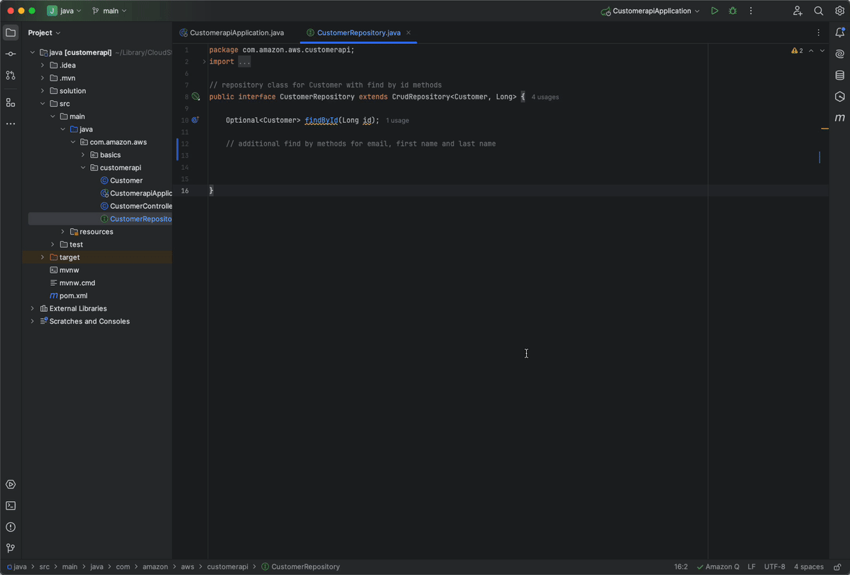 Amazon Q Developer uses information across native and MCP server-based tools to intelligently perform actions beyond code suggestions, such as reading files, generating code diffs, and running commands based on your natural language instruction. Simply type your prompt in your preferred language and Q Developer will provide continuous status updates and iteratively apply changes based on your feedback, helping you accomplish tasks faster.