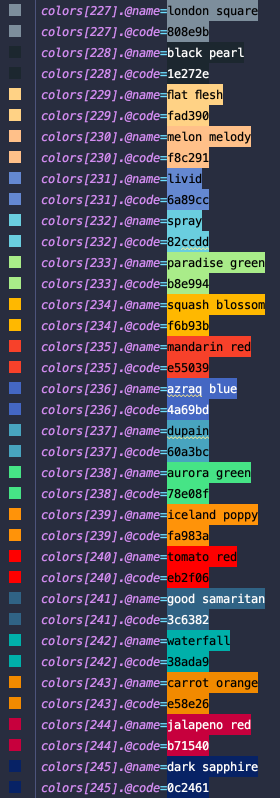 (#rgb, #rrggbb, #rrggbbaa)rgb(red, green, blue[, alpha])hsl(hue, saturation, luminance[, alpha])0xRRGGBBAA[new ]Color(r, g, b)Color.XXXXColor.FromArgb(red, green, blue)(red, green, khaki, goldenrod...)(emerald, carrot, amethyst...)This theme is backed up by OpenCollective. If you like this plugin, don't hesitate to give it a star or donate via Paypal or OpenCollective